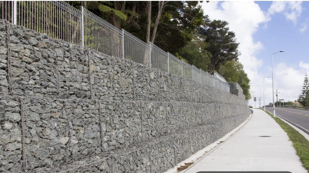 ويستخدم هذا النوع من التدعيم في المناطق التي يوجد بها تساقط للصخورـ وخاصة سفوح المنحدرات والجبال ، حيث تستخدم سلال حديدية مجلفنة بسماكة 3 مم وبأحجام مختلفة يتم ملئها بصخور مختلفة المقاسات تتراوح ما بين 15 سم - 40 سم وترص داخل السلال بطريقة مرتبة لمليء الفراغات بين الصخور ثم ترص هذه السلال جنبا إلى جنب وتربط بأسلاك حديد حتى تصبح كتلة واحدة على طول المنحدر لمقاومة انحدار الصخور المتساقطة مع السماح لمياه الأمطار والسيول بالمرور
